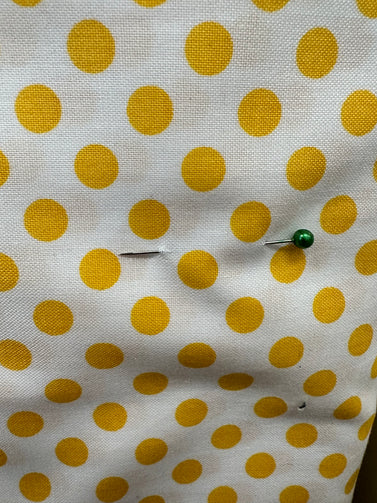 there is a green pin in the fabric the pink is 1.5” long but the dots are staggered 3/8ths diameter on circle