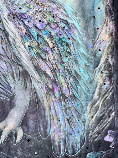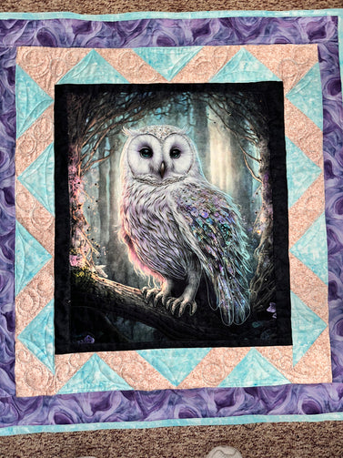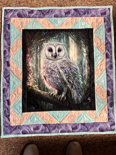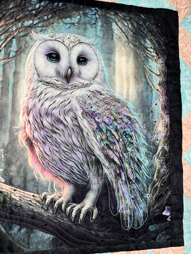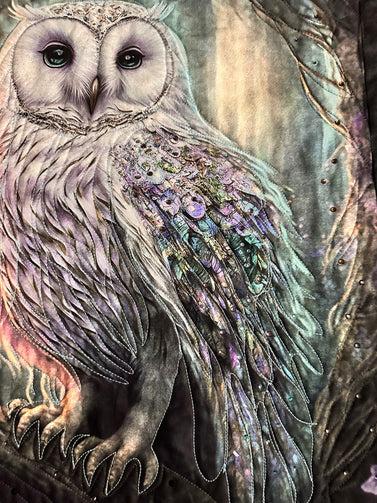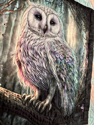 Hoot Owl # 3 Art quilt pre cut kit complete kit pattern top back binding with Crystals