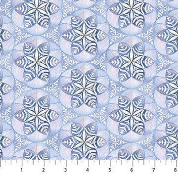 This 43" fabric with a Snowflake Medallion scene goes with polar frost collection! All of the different blue colors on this compliments it well .
