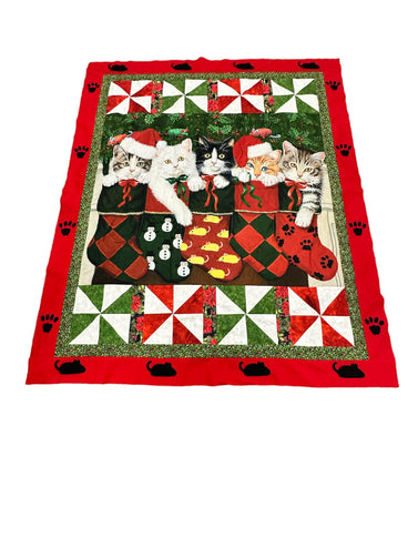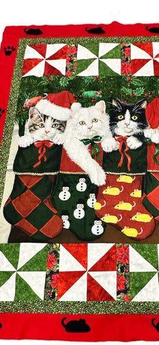David Textile Christmas Kitten Stockings are Hung Pre cut quilt kit