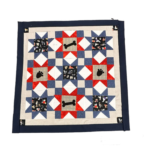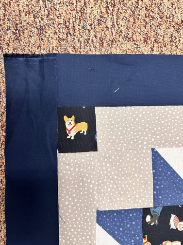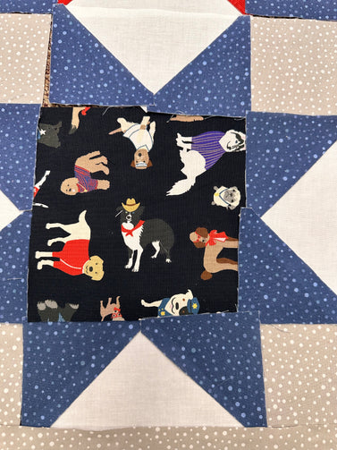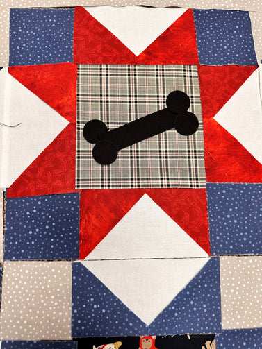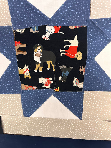golden retrievers corgi poodles husky chihuahua bishon German Shepard pit bill bulldog dachshund their is more but I tried to get most of them on here everyone wants their dog portrayed! This cute Camelot and Northcott fabrics and brand new Splash fabric that has dogs dressed up doctor a cowboy ribbons and royal british corgi, has a 12” inch block sawtooth block all is pre cut for you applique is pre backed all you do is put them done and start sewing!