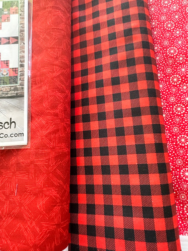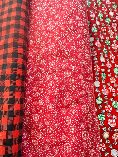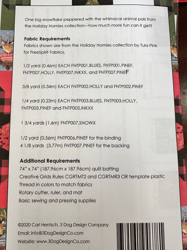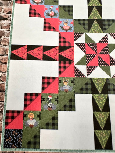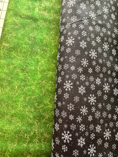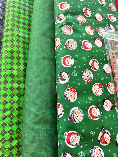 This cute Christmas quilt kit comes with all the fabrics pictured and we will label them all! Top binding and pattern beginner friendly this cute snowman and snowflakes becomes a good gift for Christmas or just a decoration for couch or chair! Camelot and Northcott and QT Fabrics with white background