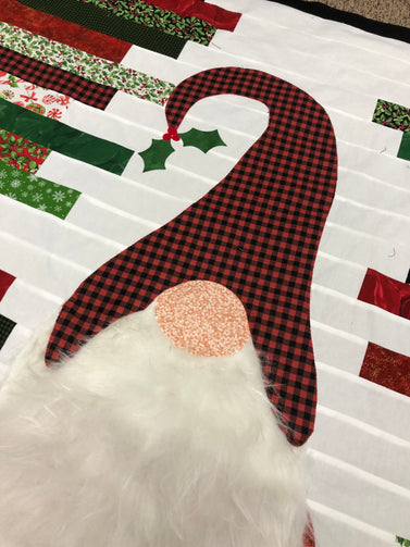 Gnome Alone Christmas pre cut Appliqué quilt top and binding kit