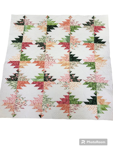 This kit contains two layers cakes fabric for two borders and binding with pattern for this cute coral and pink and gray and taupe quilt kit. Pattern is easy with pictures all fabrics pictured , this cute farmhouse kit gives a cozy feeling you will need 2.75 yards of wide backing are suggestion is vanilla cream bliss in wide backing !