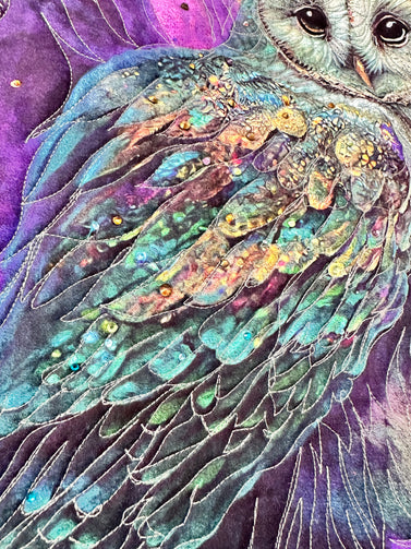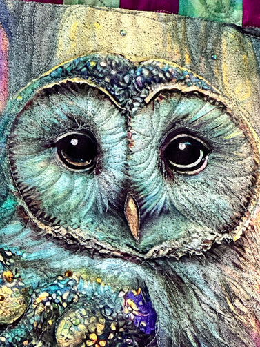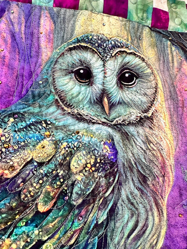 Hoot Owl # 1 Art quilt pre cut kit complete kit pattern top back binding with Crystals