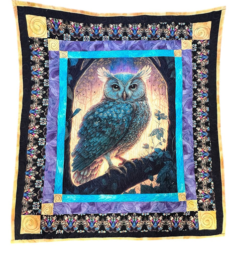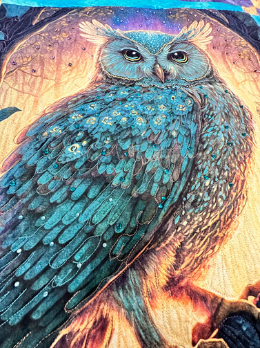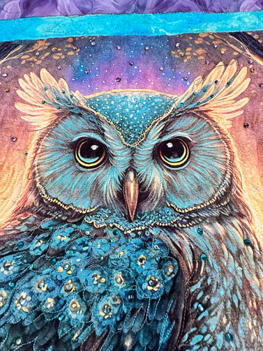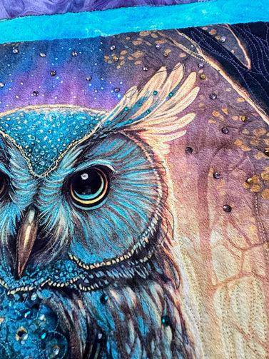 Hoot Owl # 2 Art quilt pre cut kit complete kit pattern top back binding with Crystals