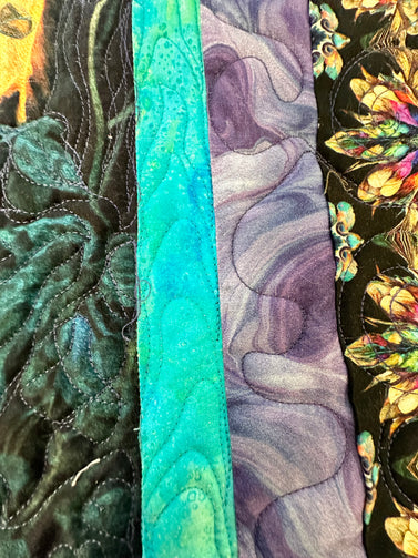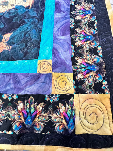 my quilt finished at 28”x33” all is pre cut and instructions picture and hot fix crystals are there also you can quilt this or can ship back to us and we will quilt for 1/2 price quilting ! Beginner level!