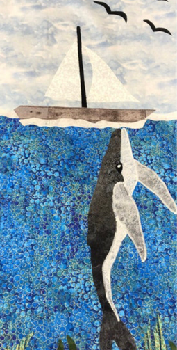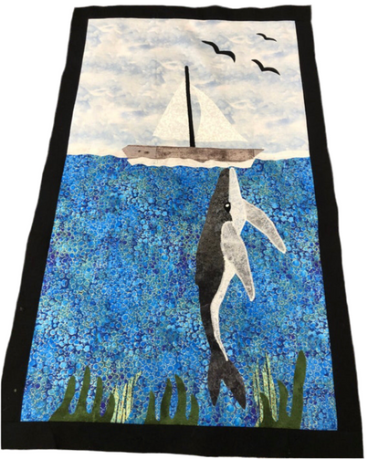 Northcott Humpback Whale and Sailboat wall hanging pre cut quilt kit.