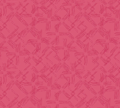 Camelot present Mixology Jane in the peony Pink with the geometric design the lil slash marks look almost Aztec many colors are offered this is a true hot pink- not neon either pink is vibrant color and the Aztec marks on fabric are 2 hues darker than the peony.