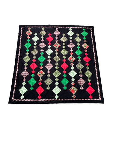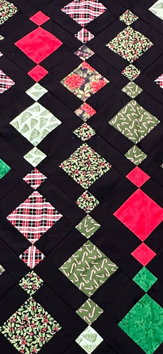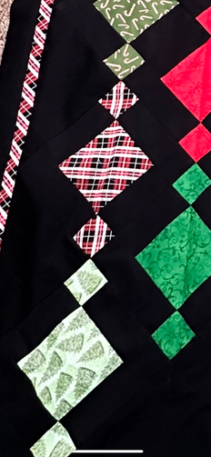 Santa’s tree farm -timeless treasure diagonal plaid - Hay it’s Christmas- solid is colorworks black and you get a surprise binding that matches the quilt!