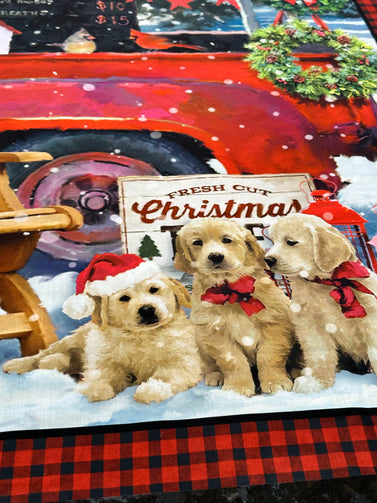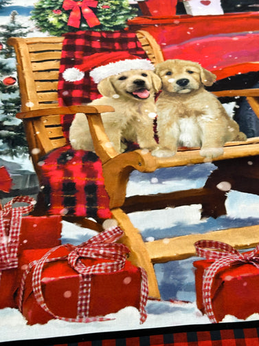 This is the cutest Golden Christmas that just released from Northcott Fabrics it finishes at 66”x73” this is a good sized quilt the ever popular buffalo plaid and the cutest golden retrivers makes this a adorable easy quilt kit make it for a friend or for yourself! all is pre cut with Northcott premium fabrics! top binding and pattern ask us about backing