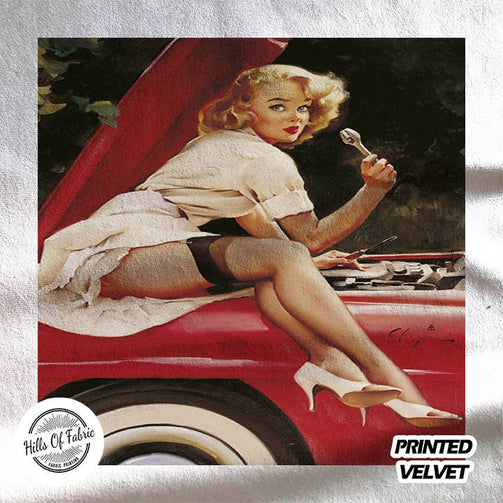 Pin Up Girl Mechanic Red Car Printed Fabric Panel