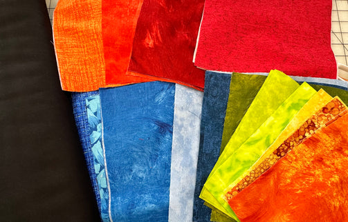 your getting black background and all premium quilting fabric 10” squares so this is layer cake friendly! the binding is the different fabrics in the quilt also! make this your next clucky creation!