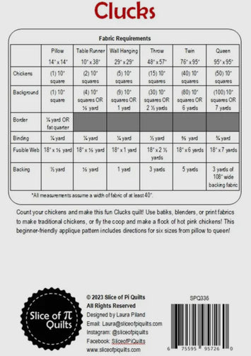 Slice of Pi Cluck chicken appliqué pre cut quilt kit