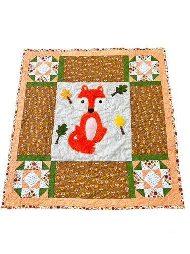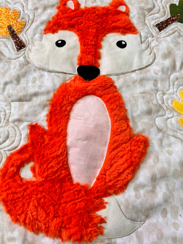 Foxy Loxy Pre cut quilt kit Eco cotton and Minky appliqués, complete kit top binding backing and binding 43”